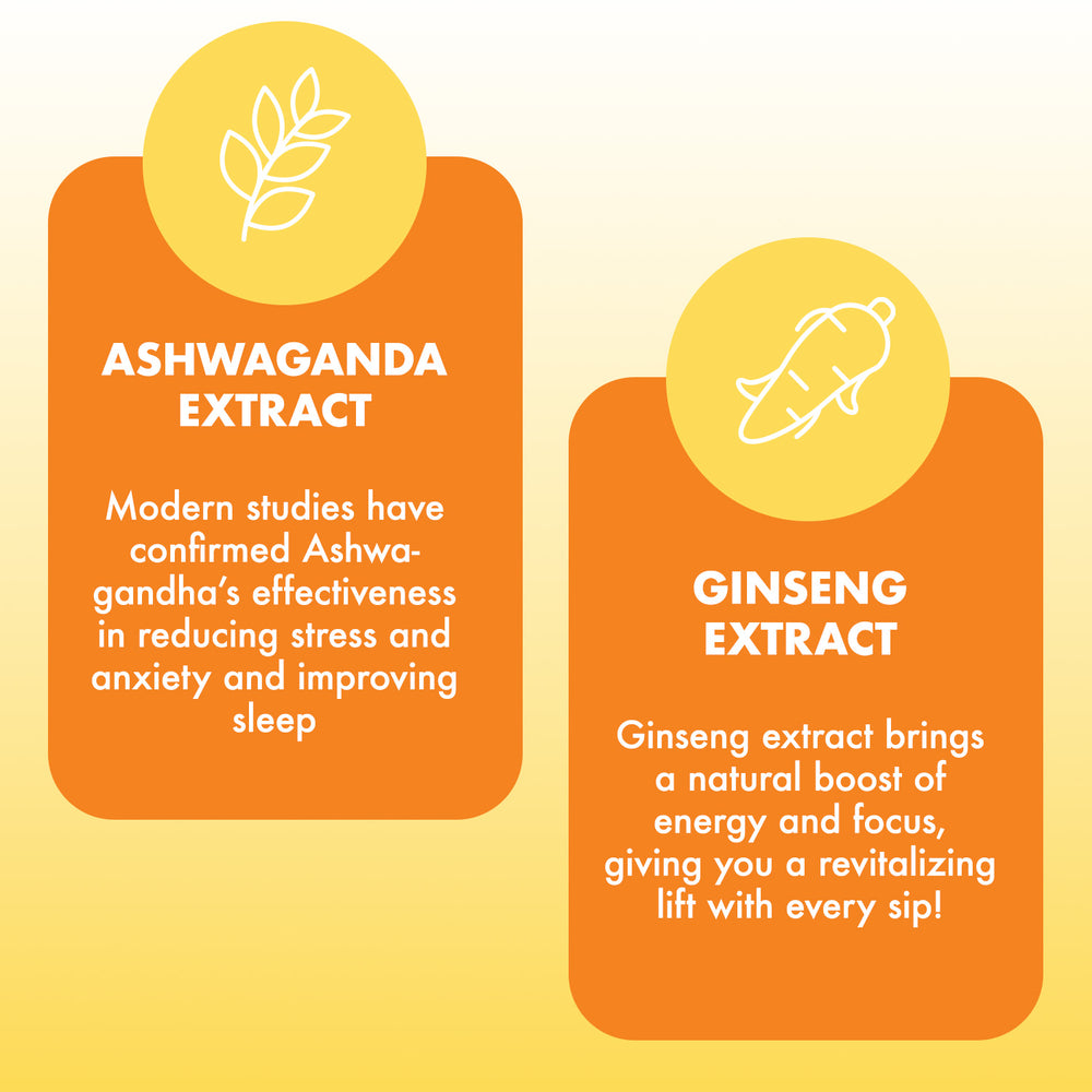 100% alcohol-free and packed Ashwagandha and Ginseng to melt stress away and boost energy.